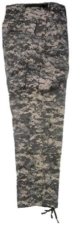 All terrain digital army combat pants / trousers - ACU's. 8 pocket design. 2 slanted bellow cargo pockets with velcro flaps, 2 lower leg pockets with hook & latch flaps. Reinforced knee patch pockets with velcro opening for knee pads. 100% cotton.